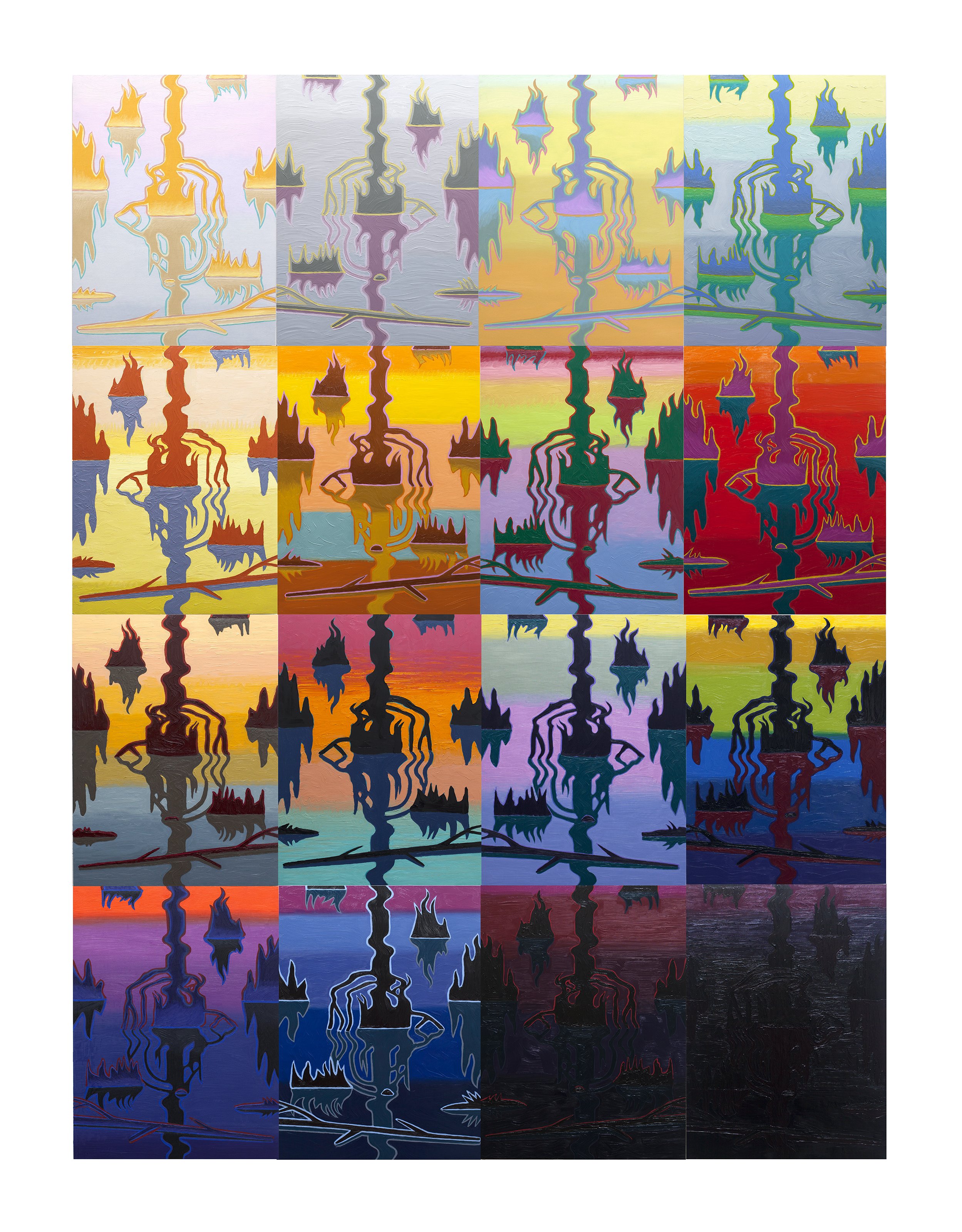 Swamp Shimmer, 16 panel arrangement, 2015-18, oil on panel, 96" x 72"